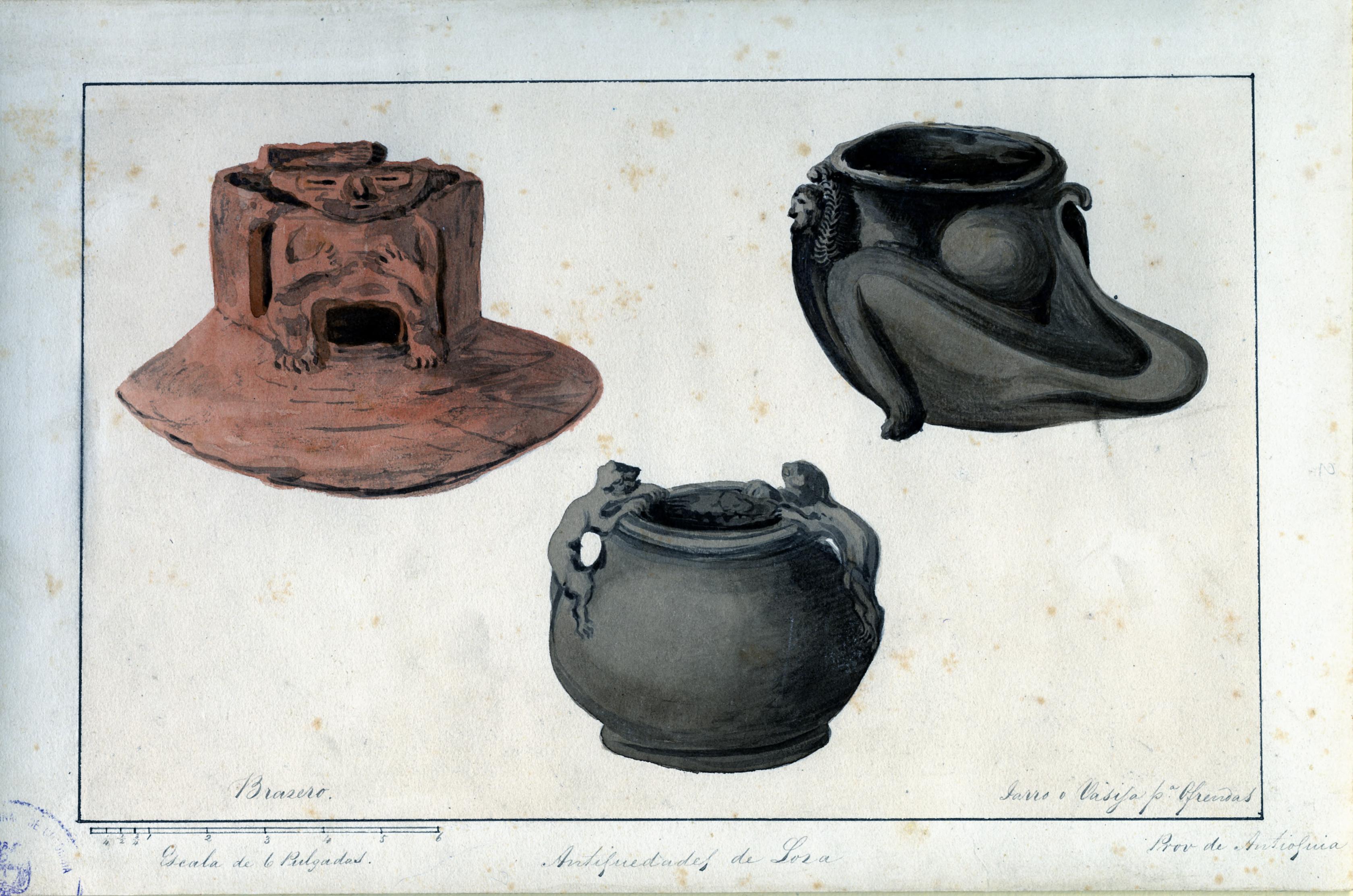 - Antigüedades de loza: brasero, jarro o vasija para ofrendas: Provincia de Antioquia